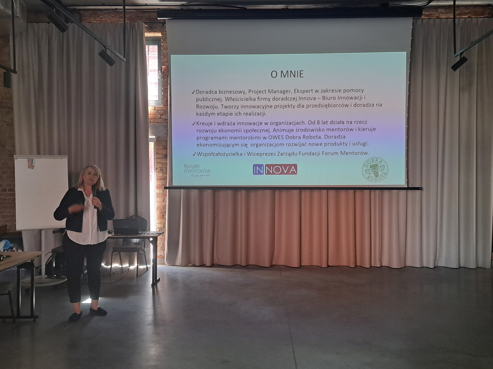 Na zakończenie Pani Hanna Gałusa z firmy doradczej InNova Biuro Innowacji i Rozwoju, Forum Mentorów zaprezentowała nowe narzędzie biznesowe dla Podmiotów Ekonomii Społecznej PESBOX PLANER nowa droga w doradztwie OWES.